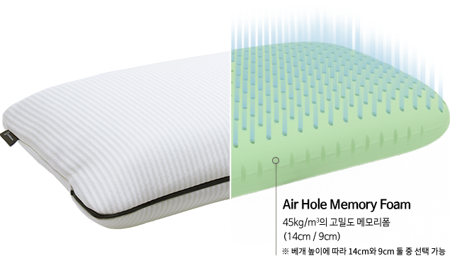 고밀도 메모리폼에 약 천 개의 에어 홀을 적용하여 통기성은 극대화하고