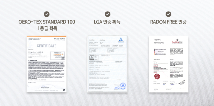 TUV 인증(세계적 권위의 독일 TÜV Rheinland의 매트리스 품질 테스트) 획득
